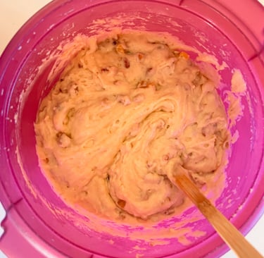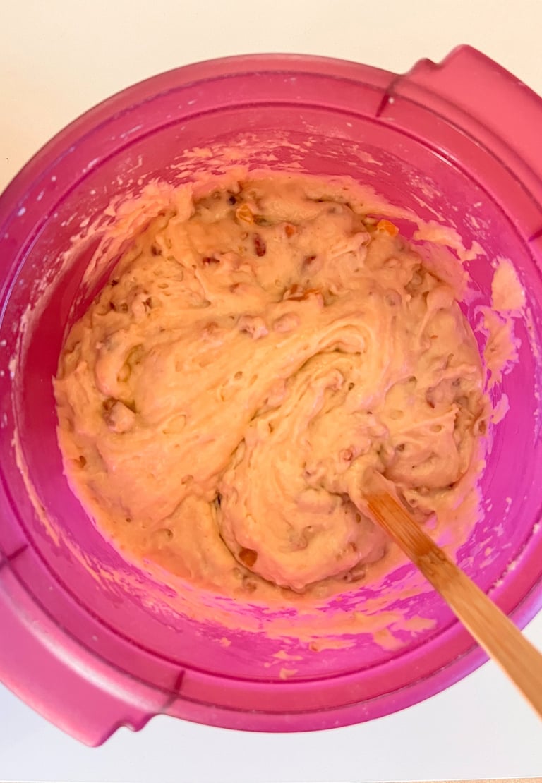 Step 3: Mash the ripe bananas, then mix them into the batter along with the pineapple and sourdough discard until smooth.