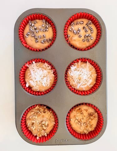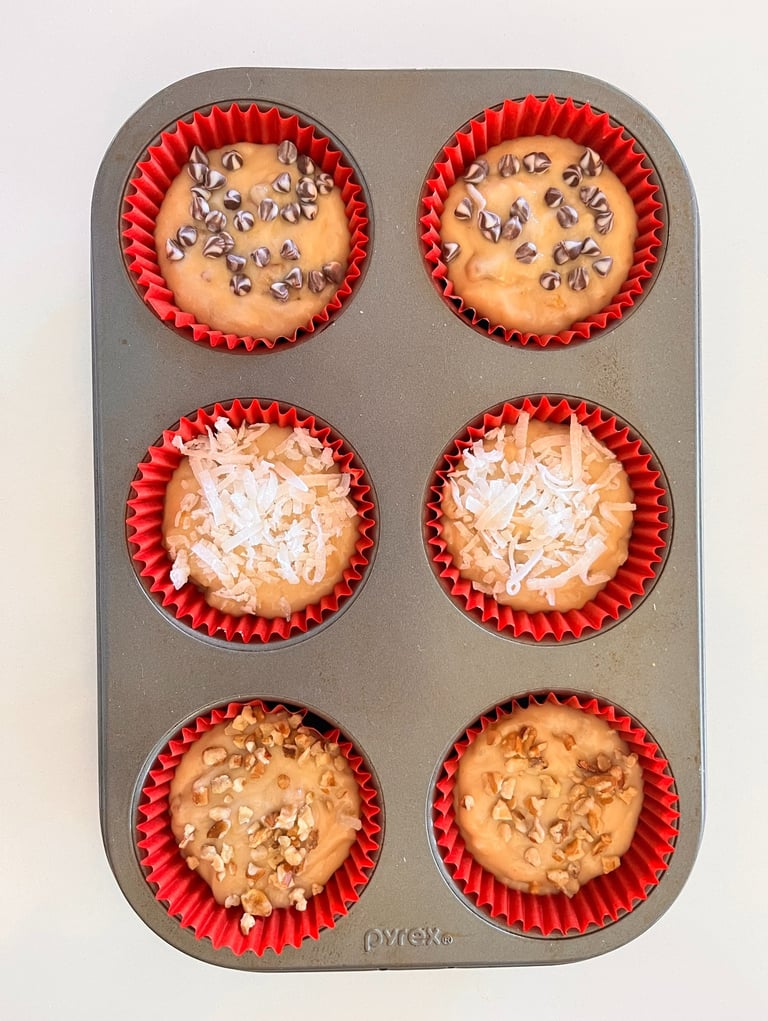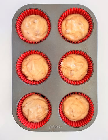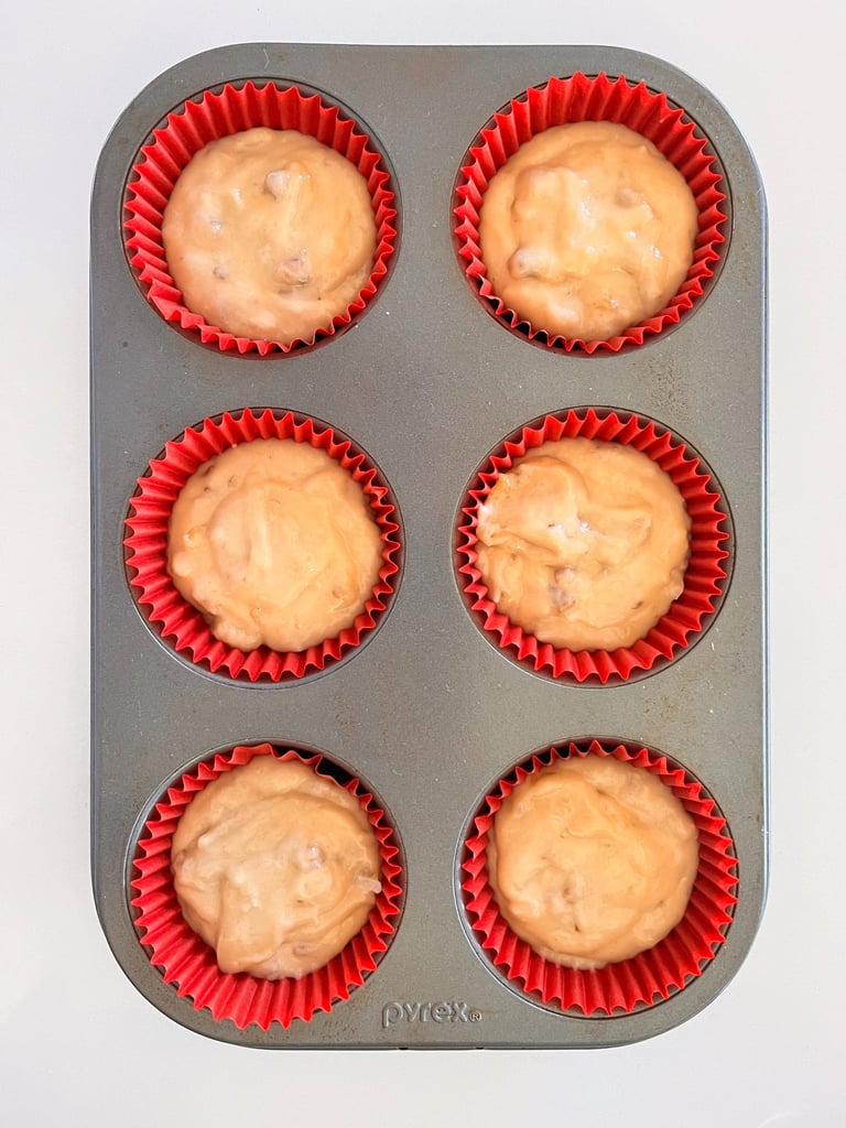 Step 9: Divide the batter evenly among the muffin cups, filling each about ¾ full.